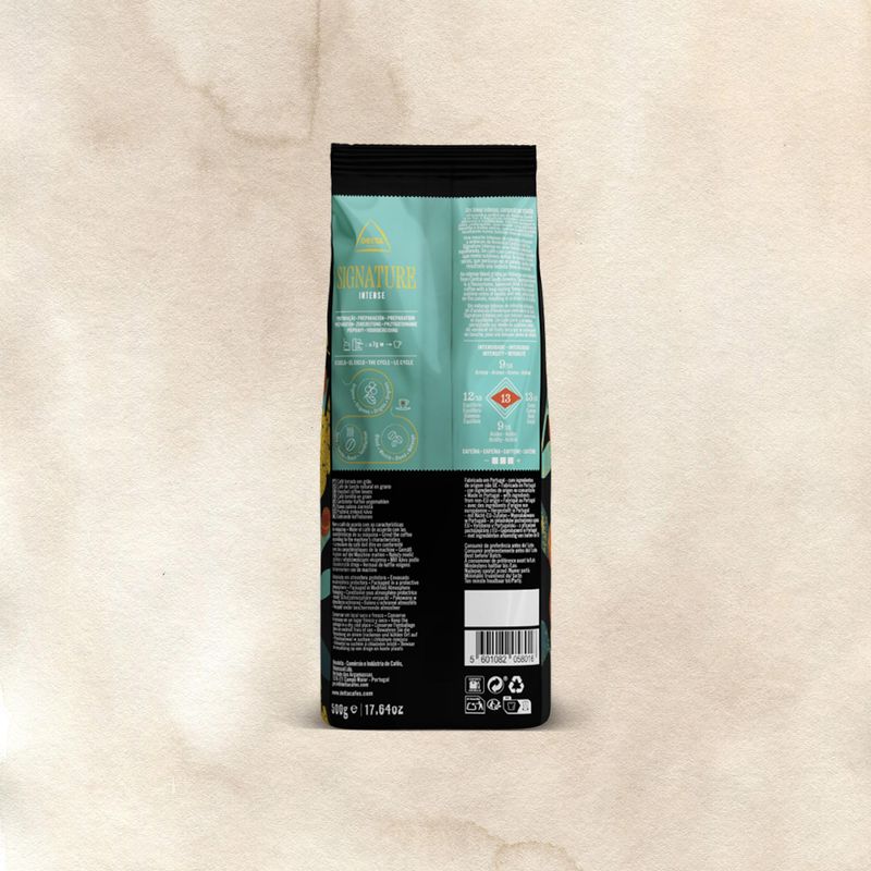 Um blend intenso, composto por robustas africanos e arábicas da América Central e do Sul, o Signature Intense é uma bebida saborosa e equilibrada. Um café encorpado de sabor prolongado, que revela notas sublimes de baunilha e frutos secos, que perduram no paladar, resultando numa bebida cheia de vitalidade.