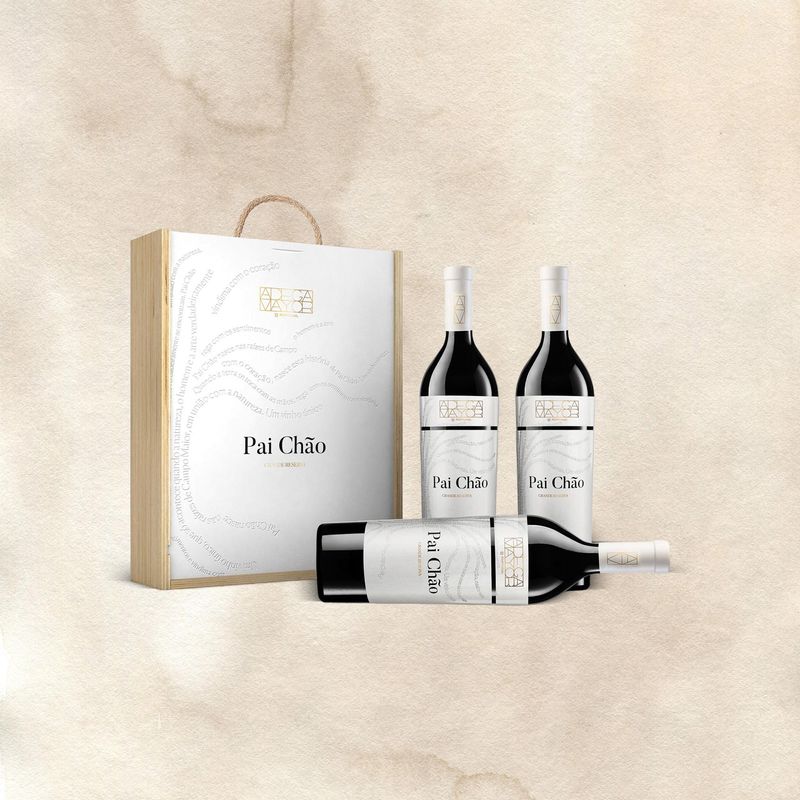 1 Caixa de Madeira com 3 Garrafas de Adega Mayor Grande Reserva Pai Chão Tinto 2020 - 75 cl;